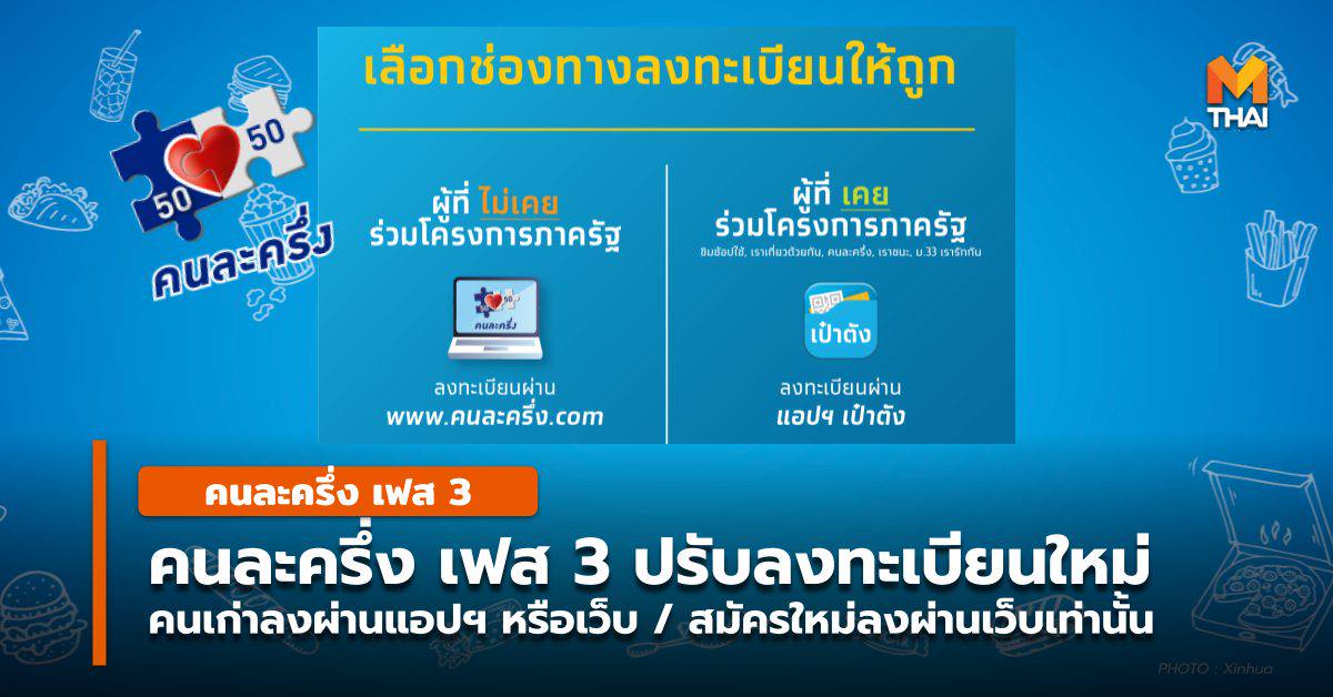 ลà¸à¸à¸°à¹à¸ ยภWww à¸à¸à¸¥à¸°à¸à¸£ ภCom à¸à¸ à¸à¸£ าà¸à¸à¸²à¸«à¸²à¸£ à¹à¸¥à¸°à¸ à¸à¸à¸à¸à¹à¸ à¹à¸à¸à¸¯ ภà¸à¹à¸ ภWongnai Pos By Foodstory from img.wongnai.com ด้านการลงทะเบียน ก็สรุปเป็นทางการแล้วว่าผู้ที่มีคนละครึ่งเฟส 1 และ 2 จะไม่ต้องลงทะเบียนใหม่ แต่ถ้าจะรับเงินให้ไปกดยืนยัน. ลงทะเบียน คนละครึ่งเฟส3 เพิ่ม 16 ล้านสิทธิ์ เริ่ม มิ.ย.นี้ อีก 15 ล้านคนต้องรับเงื่อนไข! คนละครึ่งเฟส 3 ลงทะเบียนรอบใหม่ คลัง เตรียมชง ครม. ผู้มีคุณสมบัติตรงตามเงื่อนไข สามารถเริ่มลงทะเบียนได้ผ่านทางเว็บไซต์ www.คนละครึ่ง.com ได้ตั้งแต่วันศุกร์ที่ 16 ตุลาคม 2563. เปิดวิธีลงทะเบียน คนละครึ่ง รอบ 3 ฉบับเข้าใจง่าย เพื่อรับสิทธิ์เงินซื้อของ 3,000 บาท หรือวันละไม่เกิน 150 บาท/วัน โดยสิทธิ์มีจำนวนจำกัด 64 เป็นต้นไป เวลา 06.00 น. มีคนลงทะเบียนคนละครึ่ง ไปแล้วประมาณ 20 ล้านคน โดย www.คนละครึ่ง.com แจ้งมีสิทธิคงเหลือ 11 ล้านสิทธิเท่านั้น ซึ่งหากอัตรา. คนละครึ่งเฟส 3 เตรียมต่อหลัง พ.ค.64 ผู้มีสิทธิเดิมลุ้นไม่ต้องลงทะเบียนใหม่